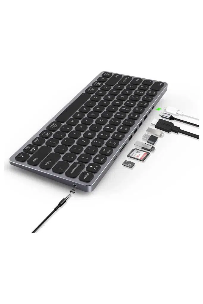 Bix USB 3.0 4K HDMI SD PD Dönüştürücülü Çok Fonksiyonlu Klavye ile laptop ve tabletinizin port sayısını 9'a kadar yükseltirken, alüminyum materyale sahip şık tasarımı ile 78 tuşlu aydınlatmalı klavye kalitesinin keyfini sürebilirsiniz. 3 adet USB 3.0 portu, 1 adet 4K HDMI portu, 1 adet PD Şarj portu, 1 adet Micro SD kart portu, 1 adet SD kart portu ve 1 adet ses portu ile tüm işleriniz artık daha kolay bir hale gelecektir. PD 3.0 teknolojisine sahip olan BX-KEYHUB01, maksimum 61W desteği ile cihazlarınızı stabil bir şekilde şarj etmekle beraber, cihazınızın ihtiyacı olan güç kaynağını sağlıklı bir şekilde cihazına ulaştırmaktadır. MacOS 10 ve üzeri, Windows 7/8/10 32 bit ve 64 bit cihazlarla tam uyumluluk sağlayan BX-KEYHUB01, şık tasarımıyla cihazınızla tam uyumluluk sağlayacaktır. Kompakt 78 tuşa sahip olan klavye, arka aydınlatma özelliği sayesinde karanlık ortamlarda bile kolay kullanım sunar. Gelişmiş makas anahtarlı (scissor switch) tuşlara ve birinci sınıf alüminyum tasarıma sahiptir.