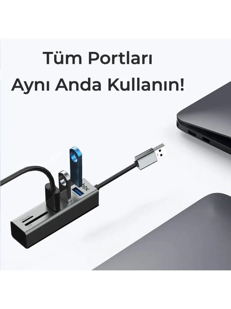Üzerinde bulunan 3 adet USB 3.0 port ve Micro-SD kart girişi sayesinde aynı anda birden fazla işlevi yapabilirsiniz. Bilgisayarlarınıza herhangi bir sürücü yüklemeden tak-çalıştır özelliği ile bilgisayarınıza bağlayarak flash bellek ve kart okuyucu aygıtlar üzerinden hızlı bir şekilde veri aktarımı sağlayabilirsiniz.