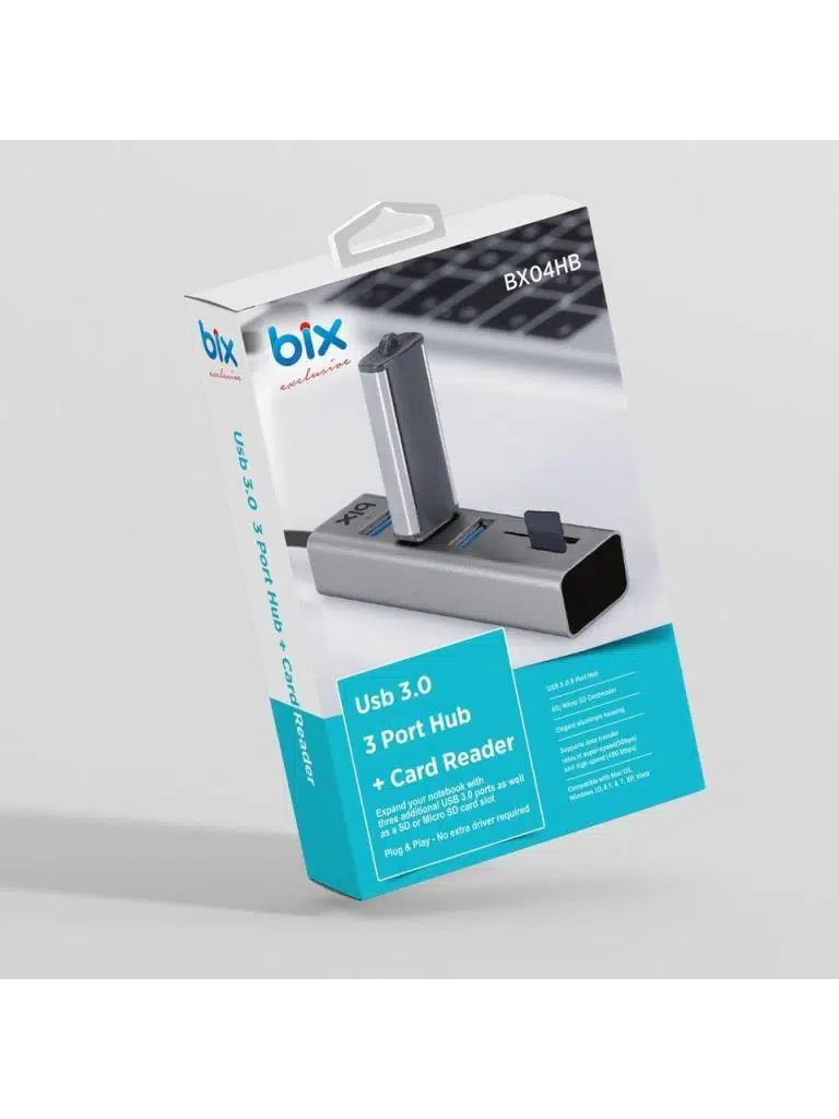 Bix USB 3.0 Kart Okuyucu ve 3 Portlu Çoklayıcı Hub, üzerinde bulunan 3 adet USB port sayesinde birden fazla flash bellek bağlayarak hızlı veri aktarımı yapabilirsiniz. Ayrıca üzerindeki Micro SD - SD kart girişleri sayesinde dosyalarınızı USB girişli aygıtlara bağlayarak veri aktarımı sağlayabilirsiniz.