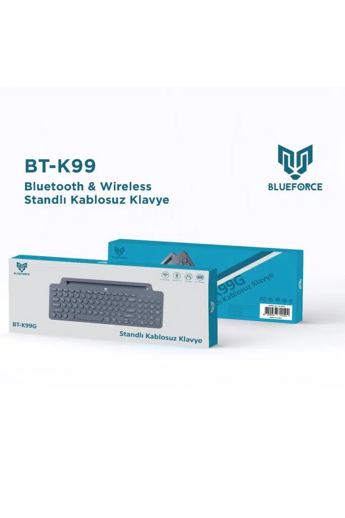 Blueforce Bt-k99 Bluetooth & Wireless Sessiz Standlı Kablosuz Klavye Gri Telefon Pc Tablet Tv Laptop Mac Uyumlu