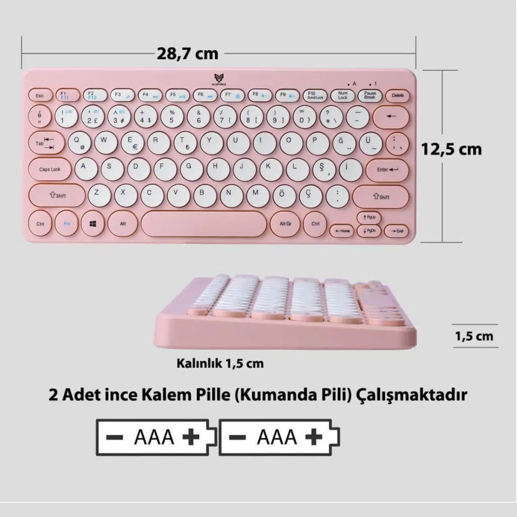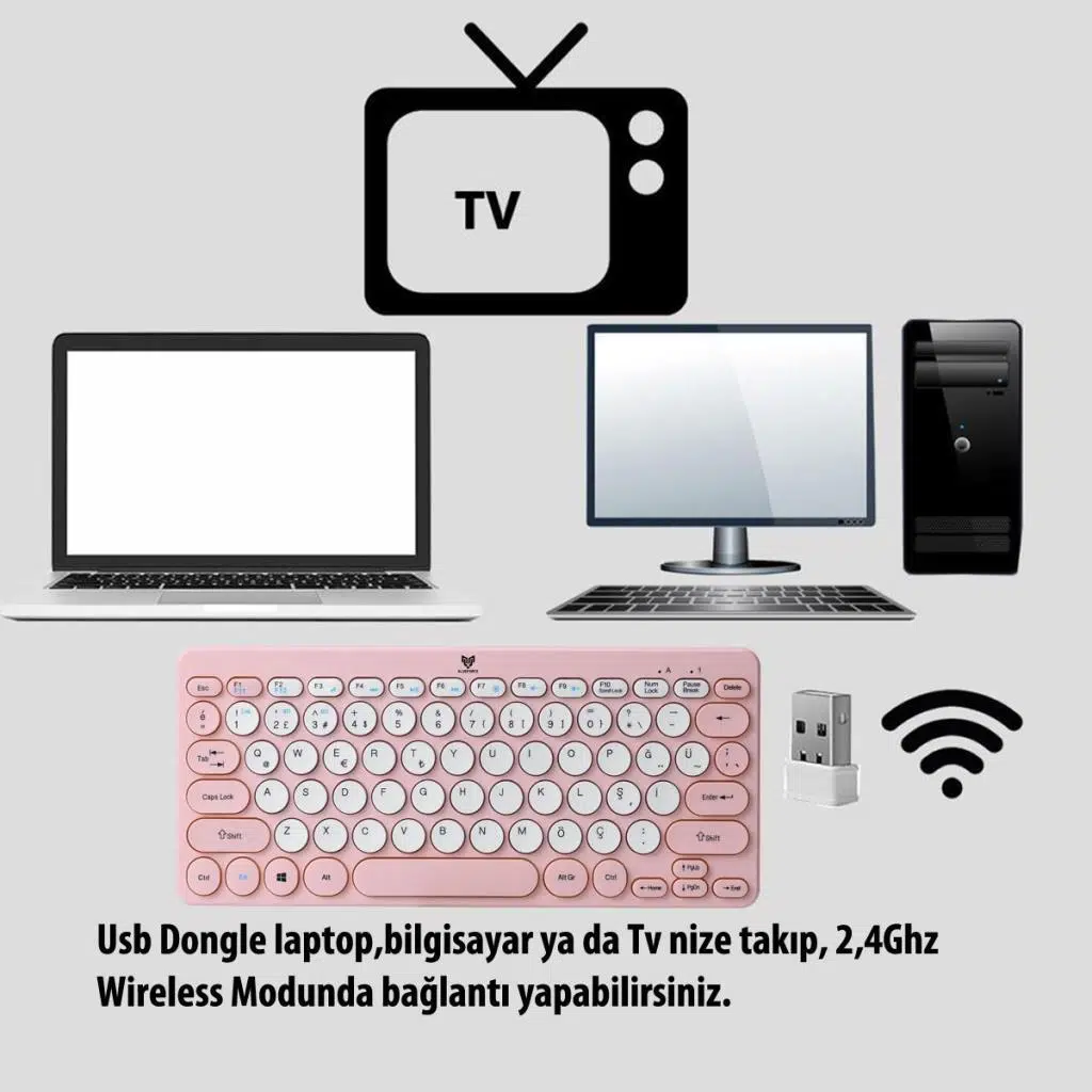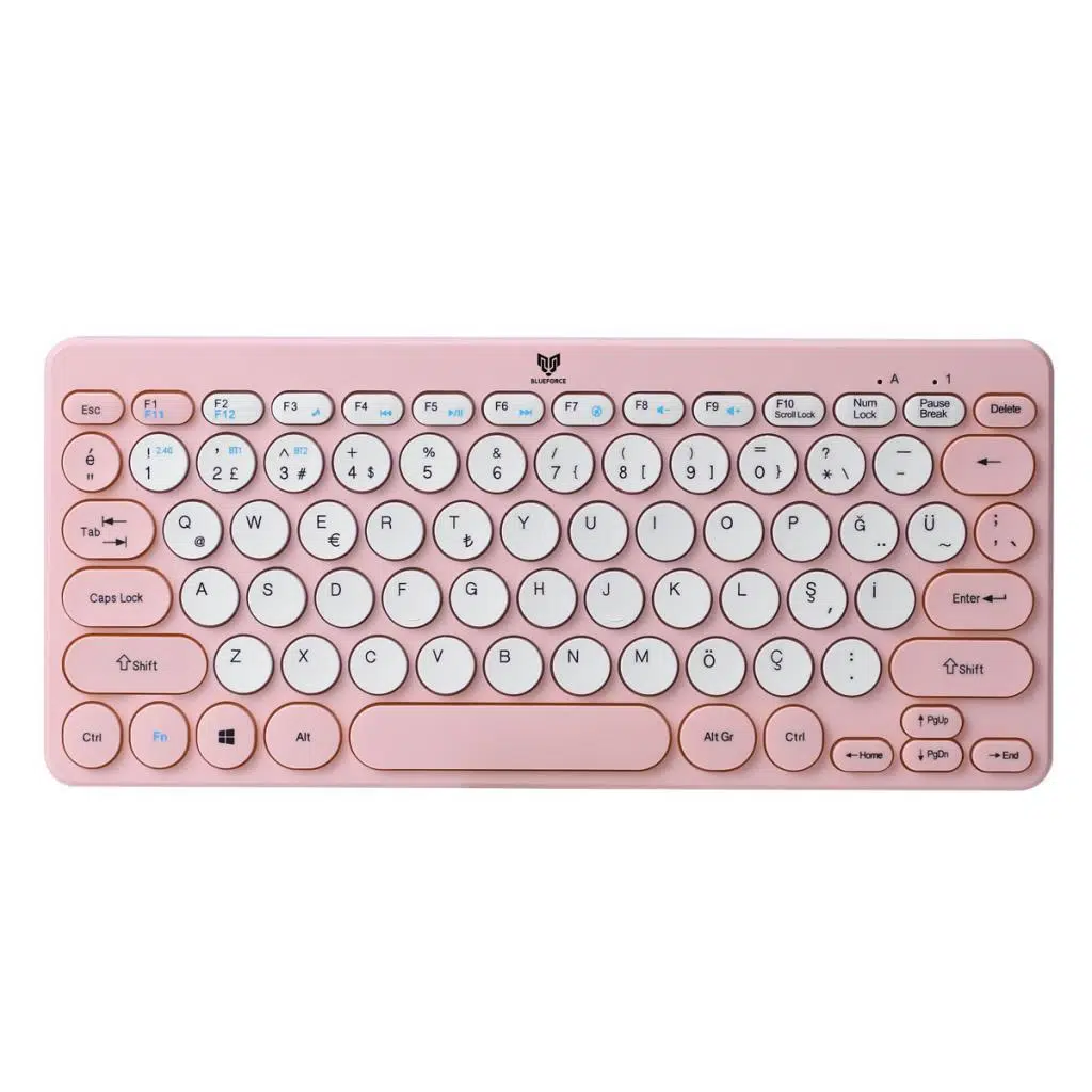 Blueforce Bt-k95 2,4Ghz Wireless + Bluetooth  Kablosuz Klavye Pembe Çift Modlu Telefon Tablet Mac Uyumlu