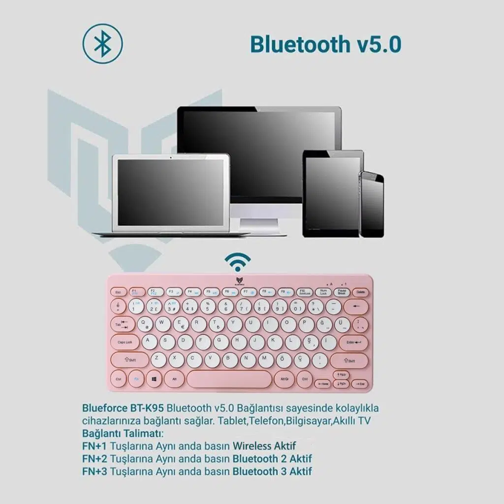 EtiketlerBlueforce Bt-k95 Bluetooth v5.0 ios Android Uyumlu Kablosuz Klavye Pem