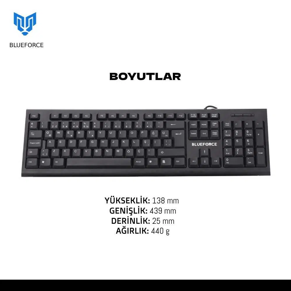 · Blueforce K-720 USB Kablolu Klavye Türkçe Q, günlük kullanım ve ofis işleri için ideal bir klavye modelidir. Kablolu bağlantı özelliği sayesinde kesintisiz ve güvenilir bir yazım deneyimi sunar.