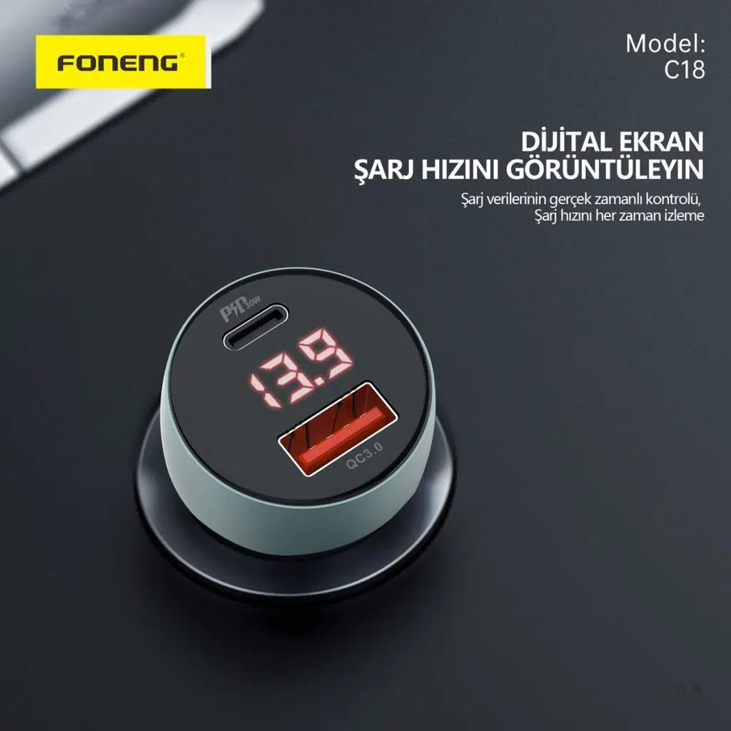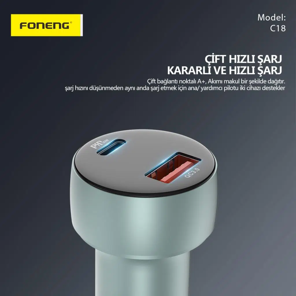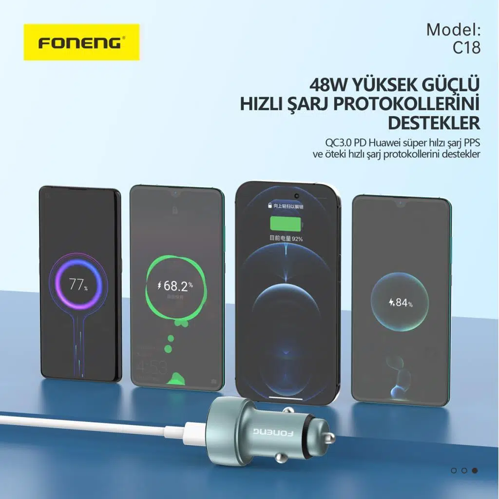 | Etiketler | Foneng C18 48W 1 Usb 1 Type-C Giriş Göstergeli Araç Çakmak Şarj Aleti |