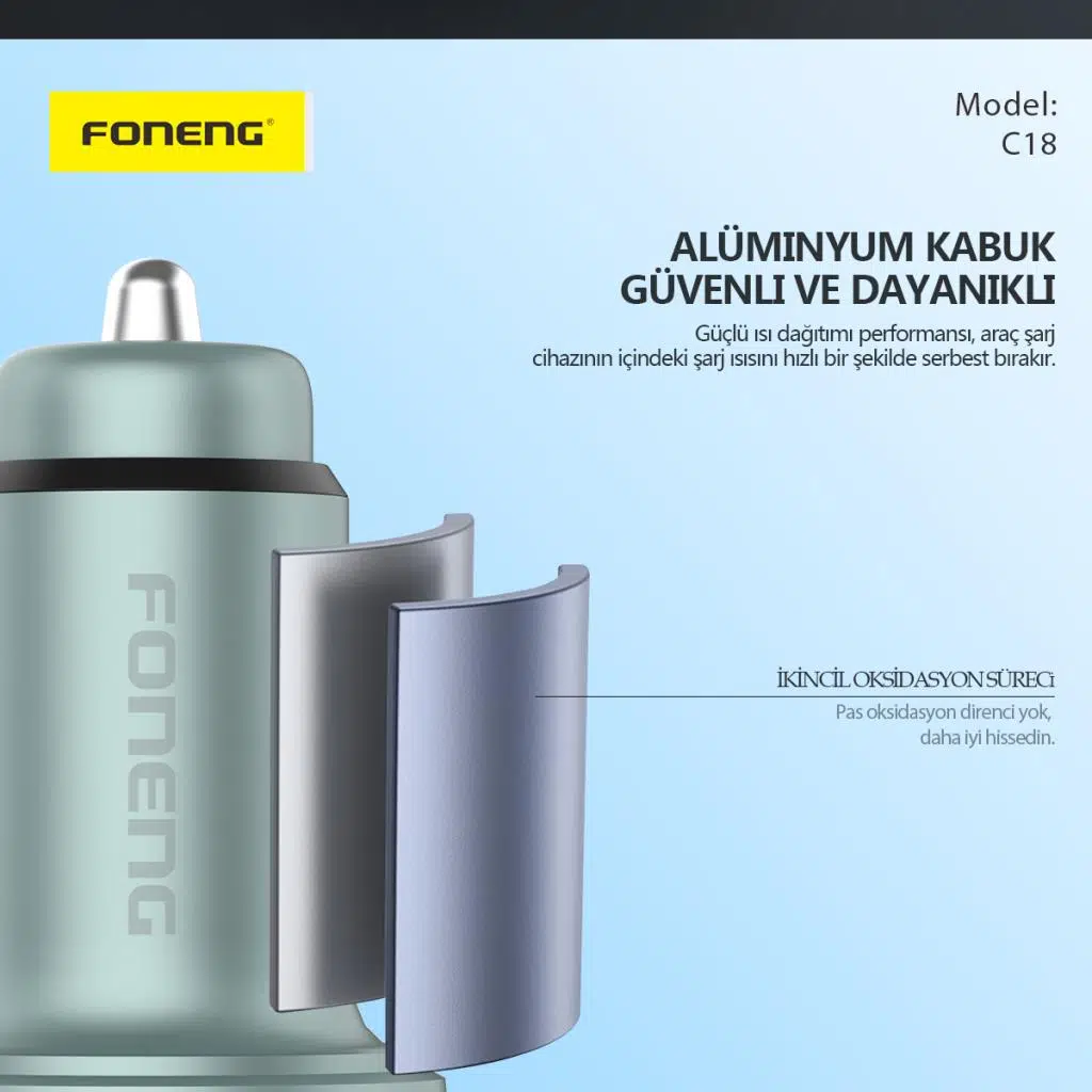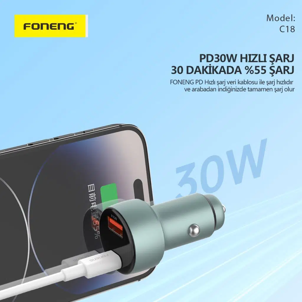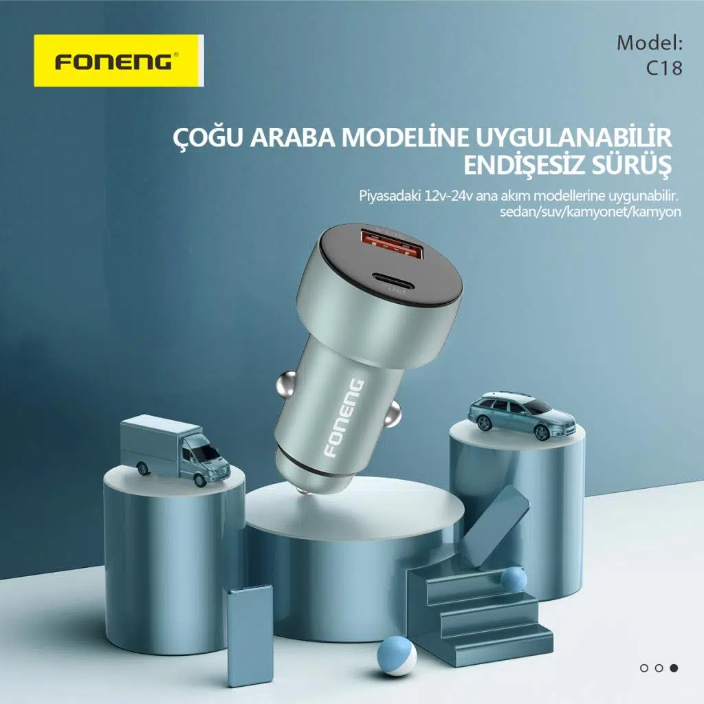 | Etiketler | Foneng C18 48W 1 Usb 1 Type-C Giriş Göstergeli Araç Çakmak Şarj Aleti |
