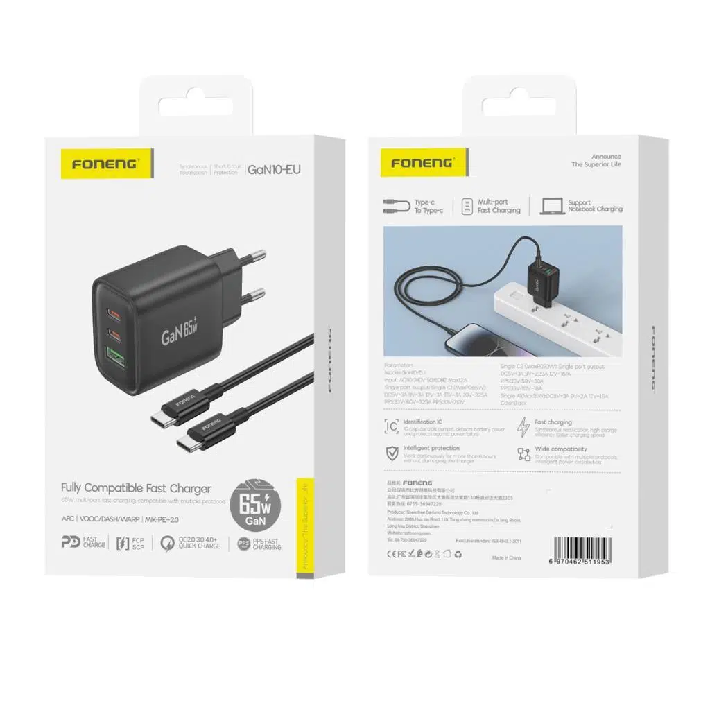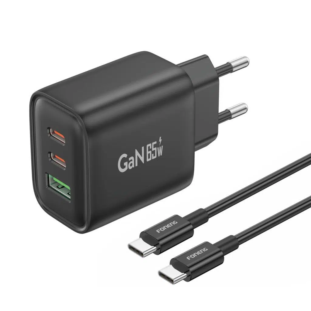Foneng GaN10 GaN 65W 2xType-C 1xUsb 3 Girişli Hızlı Şarj Aleti