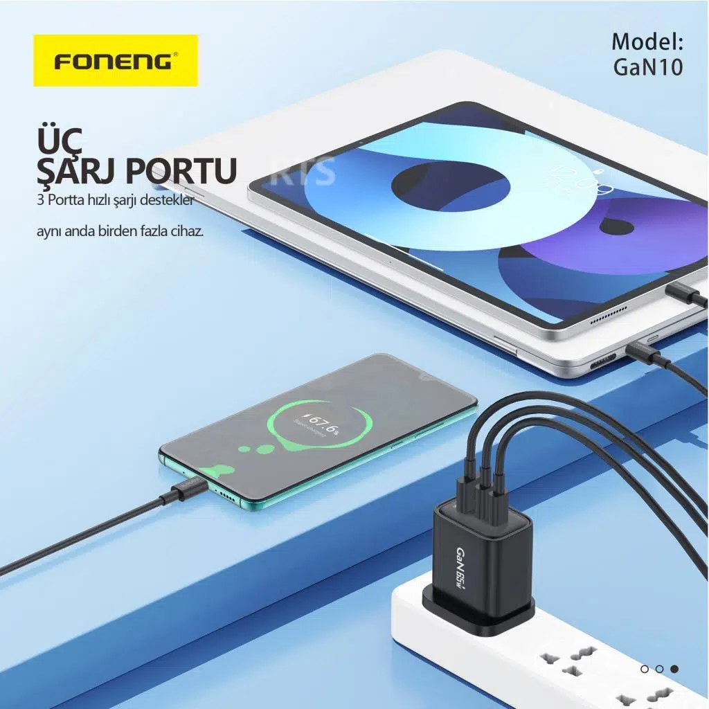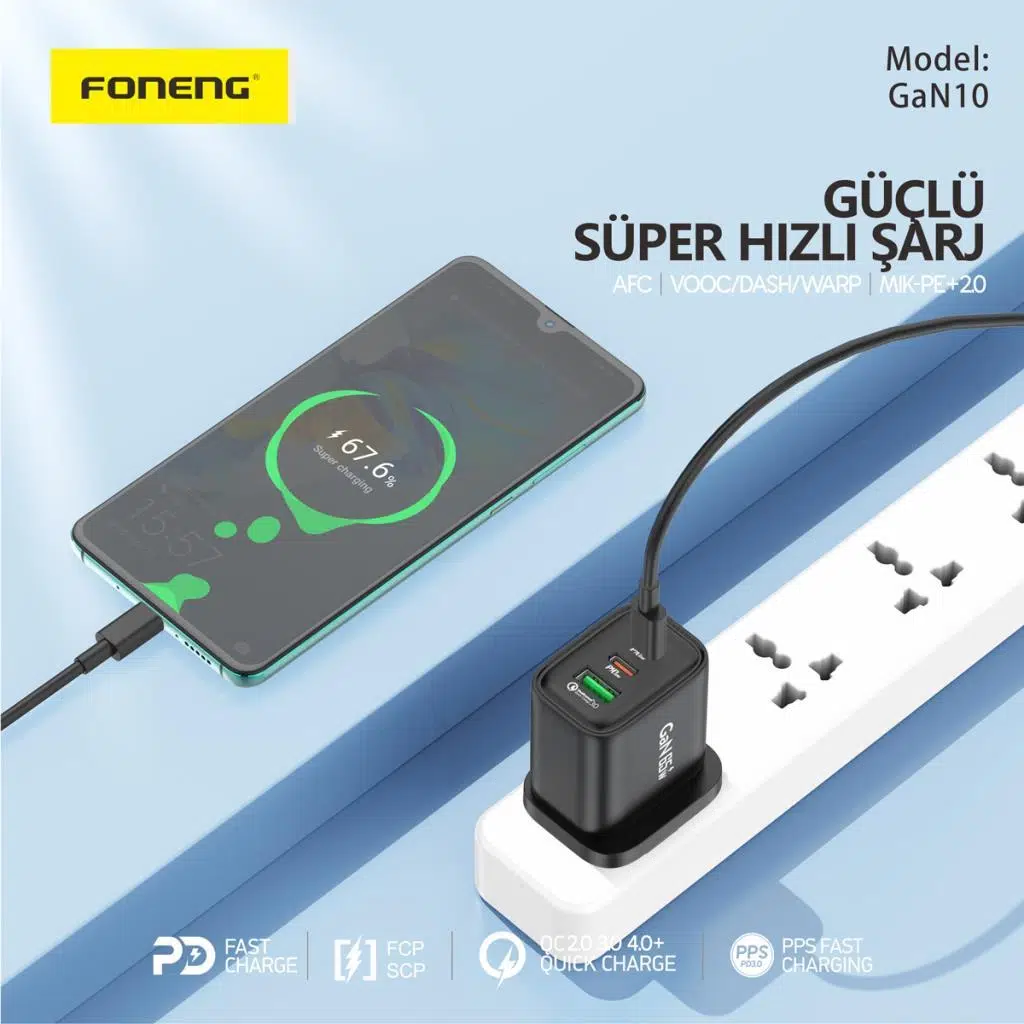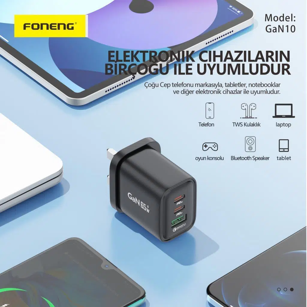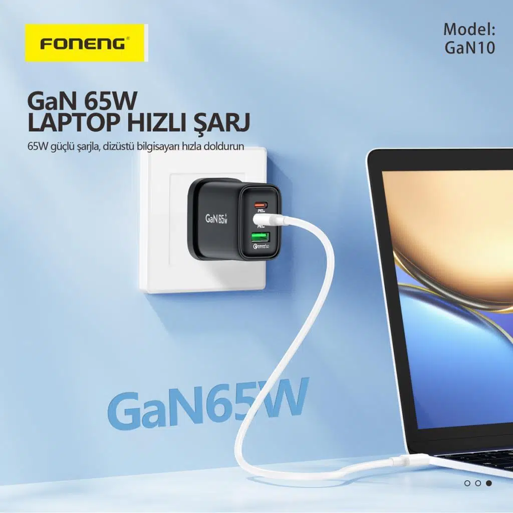 | Etiketler | Foneng GaN10 GaN 65W 2 Type-C 1 Usb Girişli Type-C Hızlı Şarj Aleti |