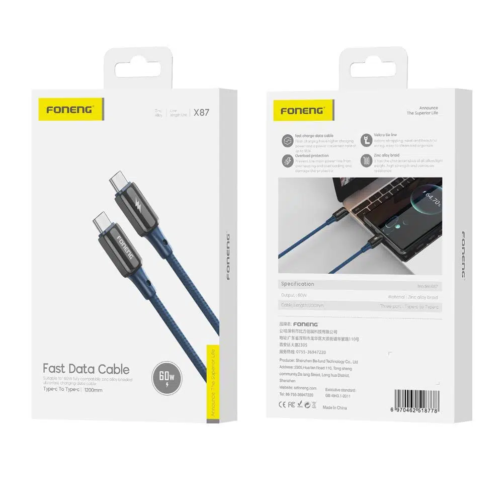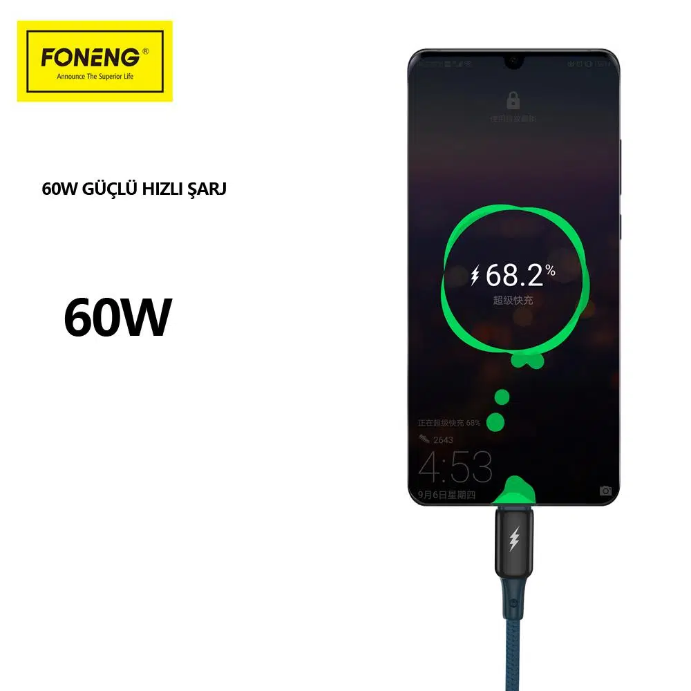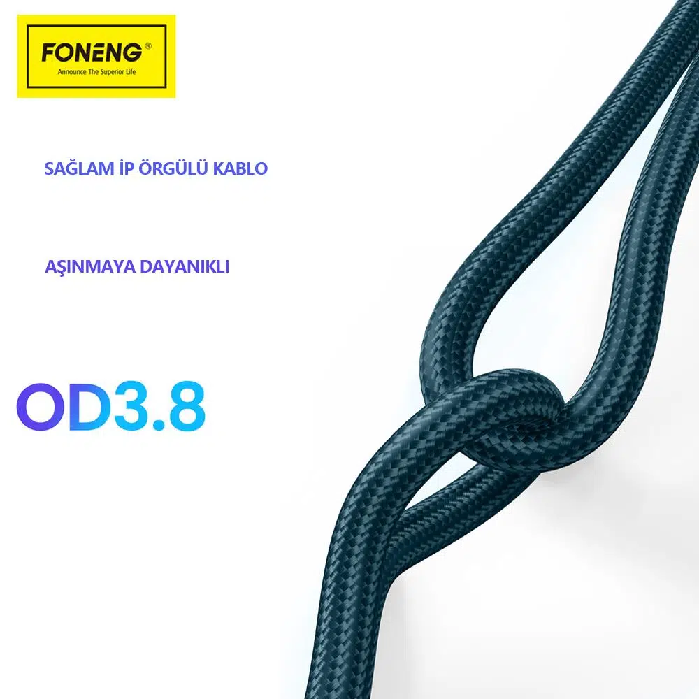 FONENG X87 60W Type-c to Type-C Şarj Ve Data Kablosu İp Örgülü 1,2M