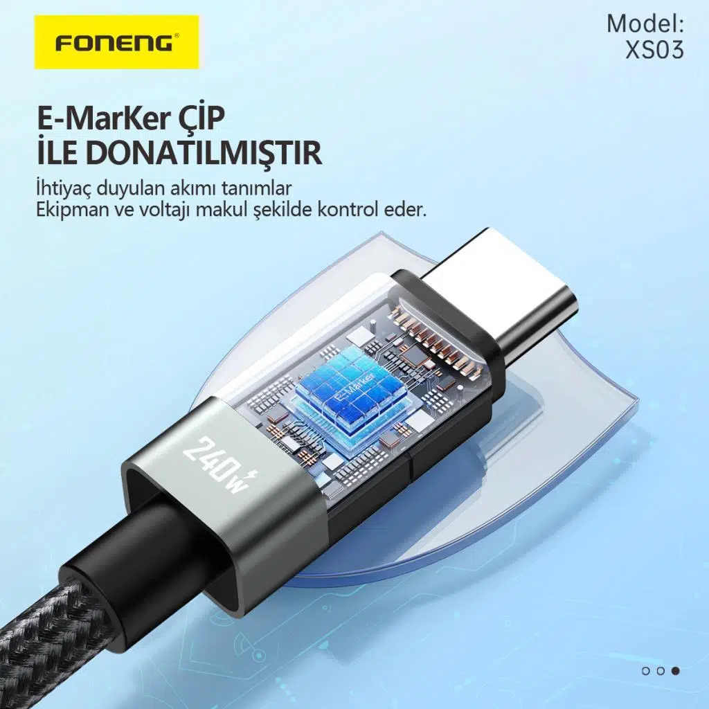 FONENG XS03 240W Type-c To Type-C Şarj Ve Data Kablosu İp Örgülü 2 Metre