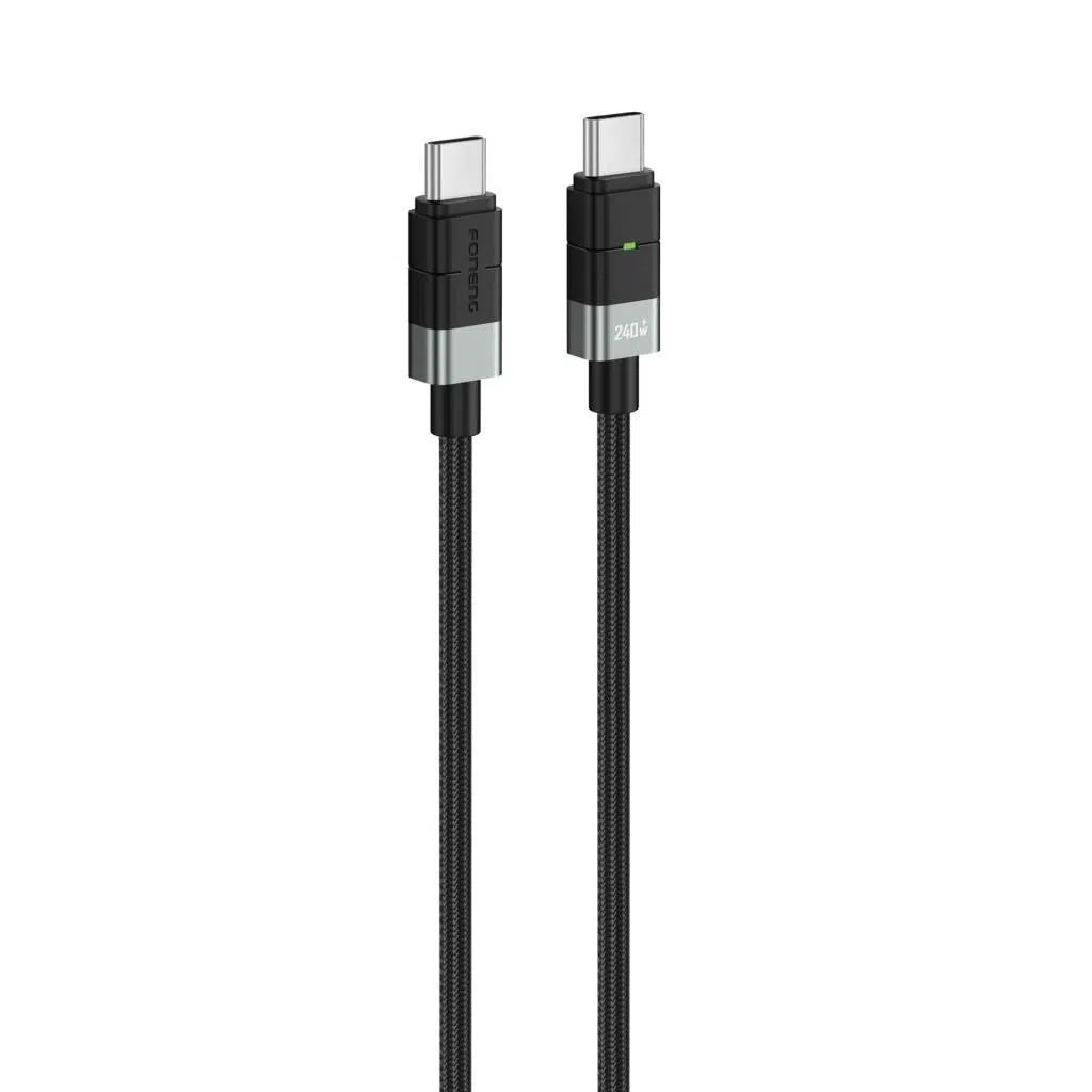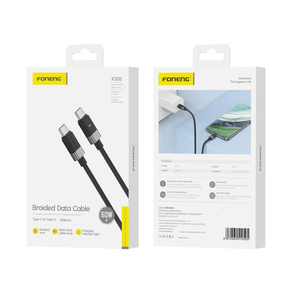 FONENG XS03 60W Led Işıklı Type-c To Type-C Şarj Ve Data Kablosu İp Örgülü 2 Metre