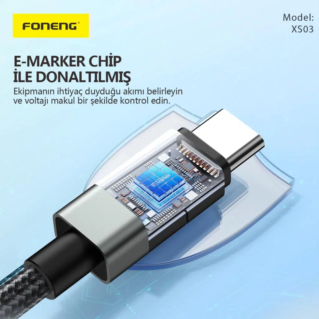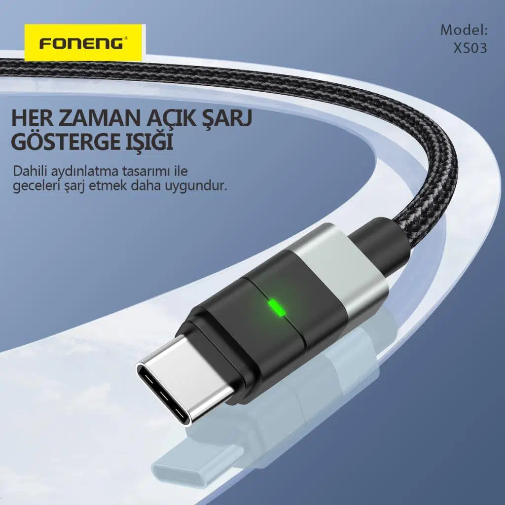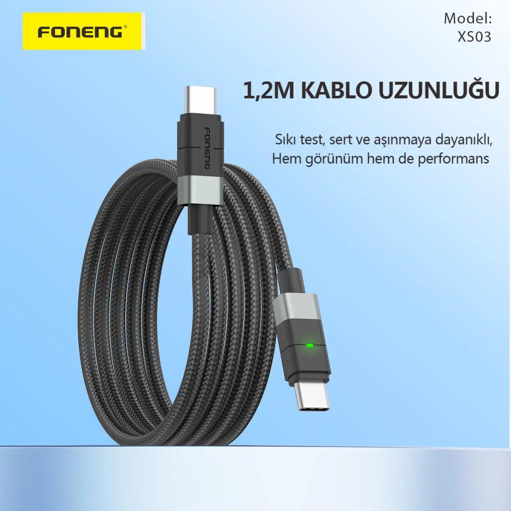 | Etiketler | FONENG XS03 60W Type-c den Type-C ye Şarj Ve Data Kablosu İp Örgülü |