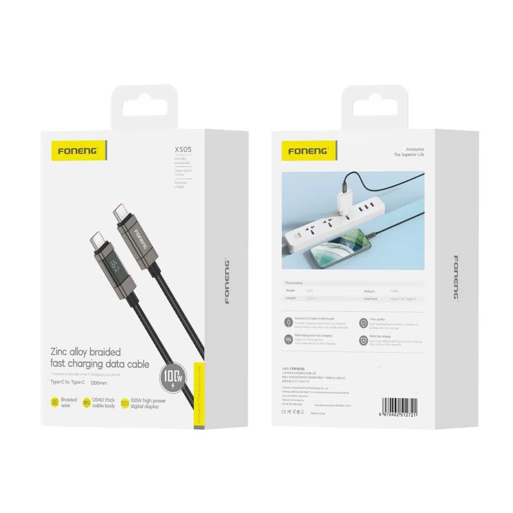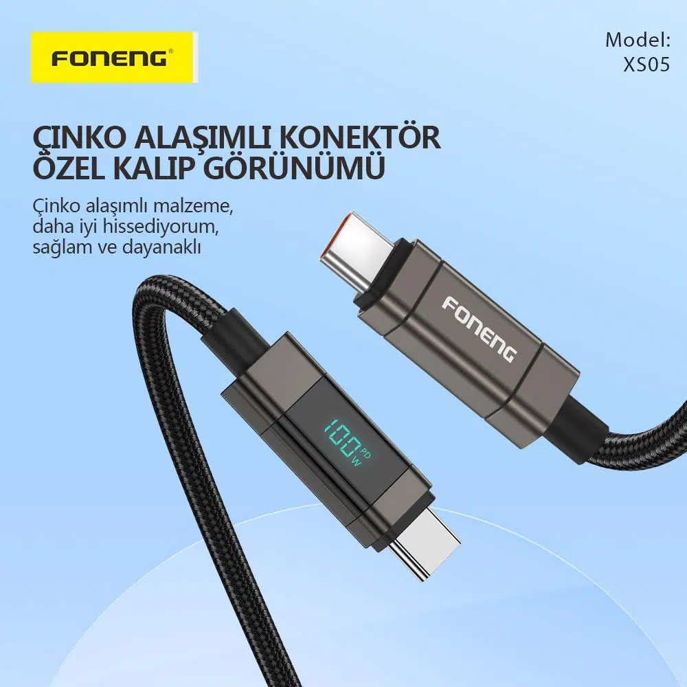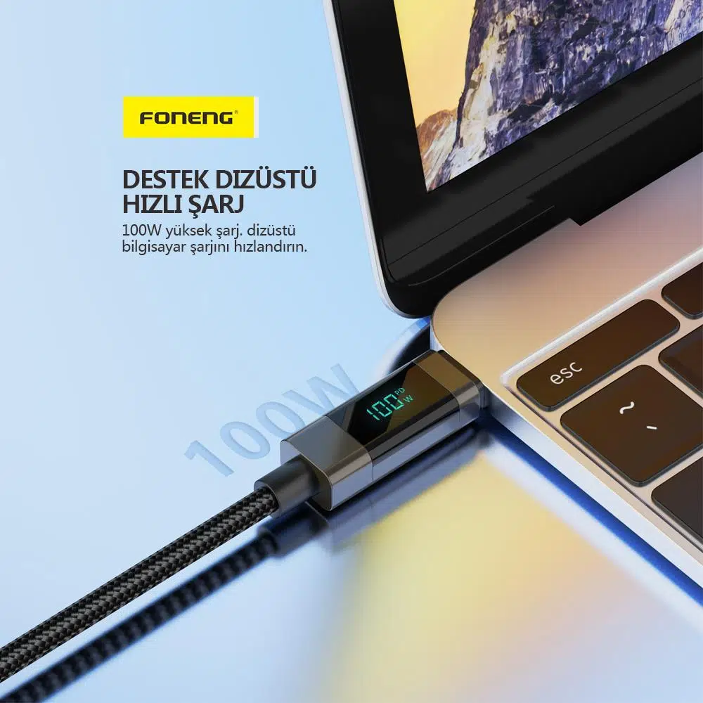 1,2M Dijital Ekranlı Şarj Göstergesi Çinko Alaşımlı Örgülü Kablo (100W)(PD27W)