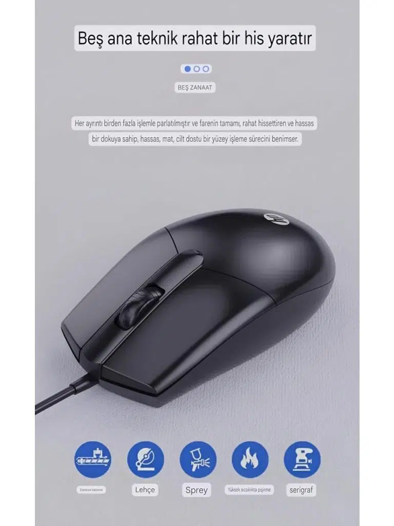 Özellikler Renk: Siyah Model Adı: HP M260 Tür: Optik Fare Bilgisayarla bağlantı: kablolu Uygulanabilir modeller: masaüstü bilgisayar, dizüstü bilgisayar Fotoelektrik çözünürlük: 1200 dpi (dpi) Düğme sayısı: 3 (anahtar) Arayüz : USB Ergonomiyi destekleyip desteklemediği: destekler Ayarlanabilir çözünürlük: üç vites ve altı Tekerlek yönü: dokunmatik tekerlek Tel uzunluğu: 1,5 (m) Ürün boyutu: yaklaşık 116,50 × 61,5 × 37,9 MM Ürün ağırlığı: yaklaşık :23 gr 3D fare düğmesi tasarımı. Optik motor, doğru konumlandırma Tak ve Çalıştır Yüksek Dayanıklılık Sağ ve sol elini kullananlar için iki elle kullanılabilen tasarım
