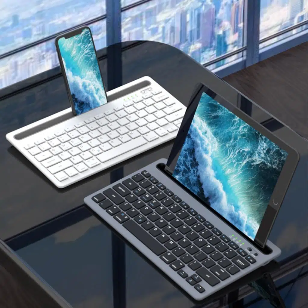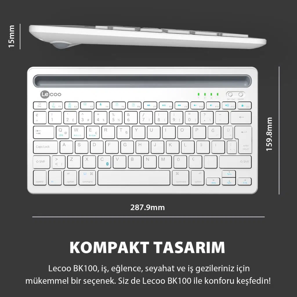 Lecoo BK100 Çoklu Cihaz Özellikli Şarj Edilebilir Kablosuz Bluetooth Klavye, aynı anda iki cihazı destekleyen ve aynı anda 2 cihazı hızlı bir şekilde değiştirerek kullanabileceğiniz mini bir Bluetooth klavyedir. İş, eğlence, seyahat ve iş gezisi için uygundur.