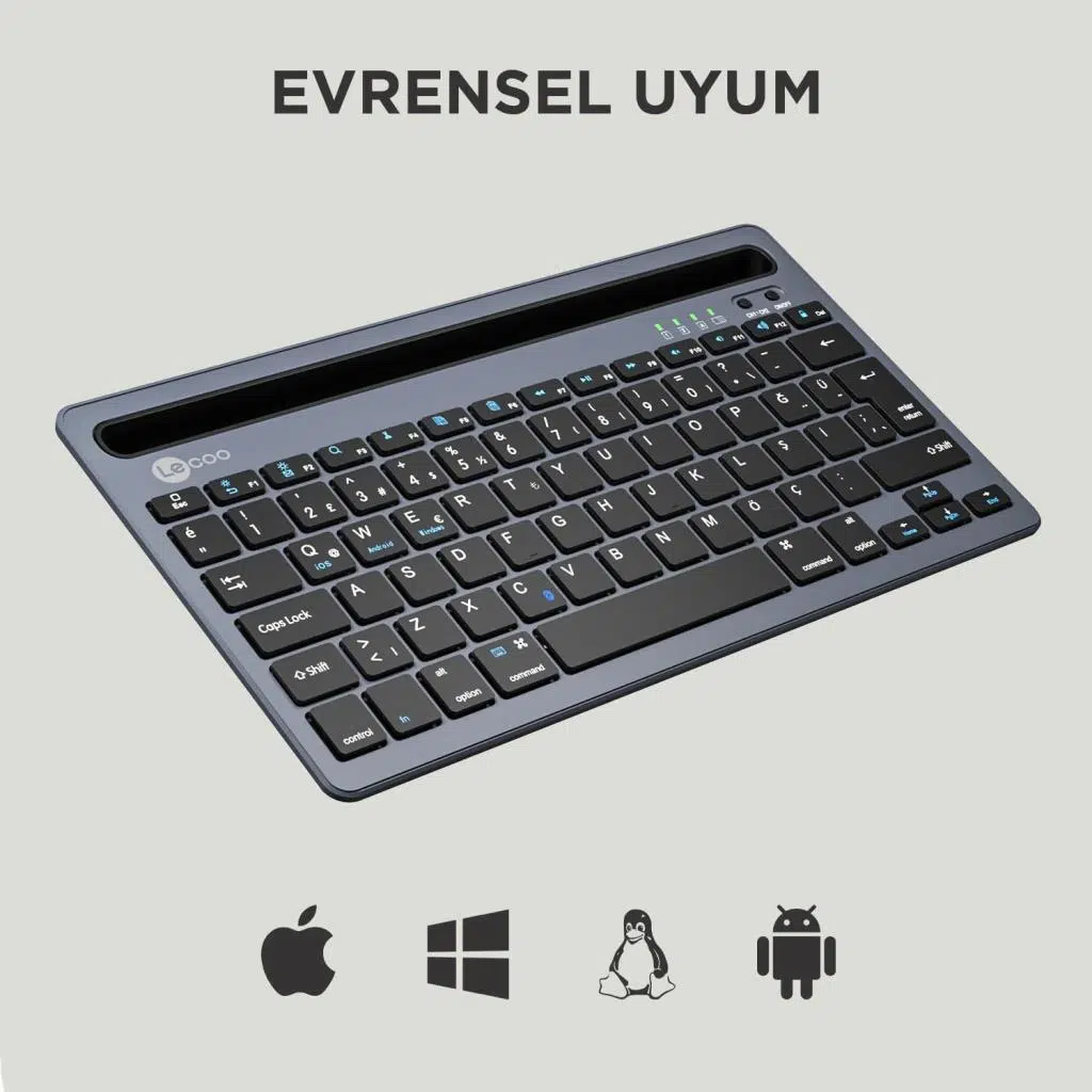 Lecoo BK100 Çoklu Cihaz Özellikli Şarj Edilebilir Kablosuz Bluetooth Klavye, Android 3.0 ve üstü, iOS 4.0 ve üstü, Windows XP/7/8 ve üstü sistemleri desteklemektedir. Mac, iPad, iPhone, laptop, PC, tablet, akıllı telefonlarda kullanabilirsiniz.