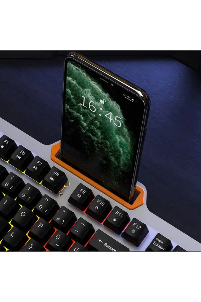 Lecoo KB123 Oyuncu Klavyesi üzerinde bulunan telefon tutacak bölmesi, telefonunuzu kolayca yerleştirmenizi ve kullanmanızı sağlar.