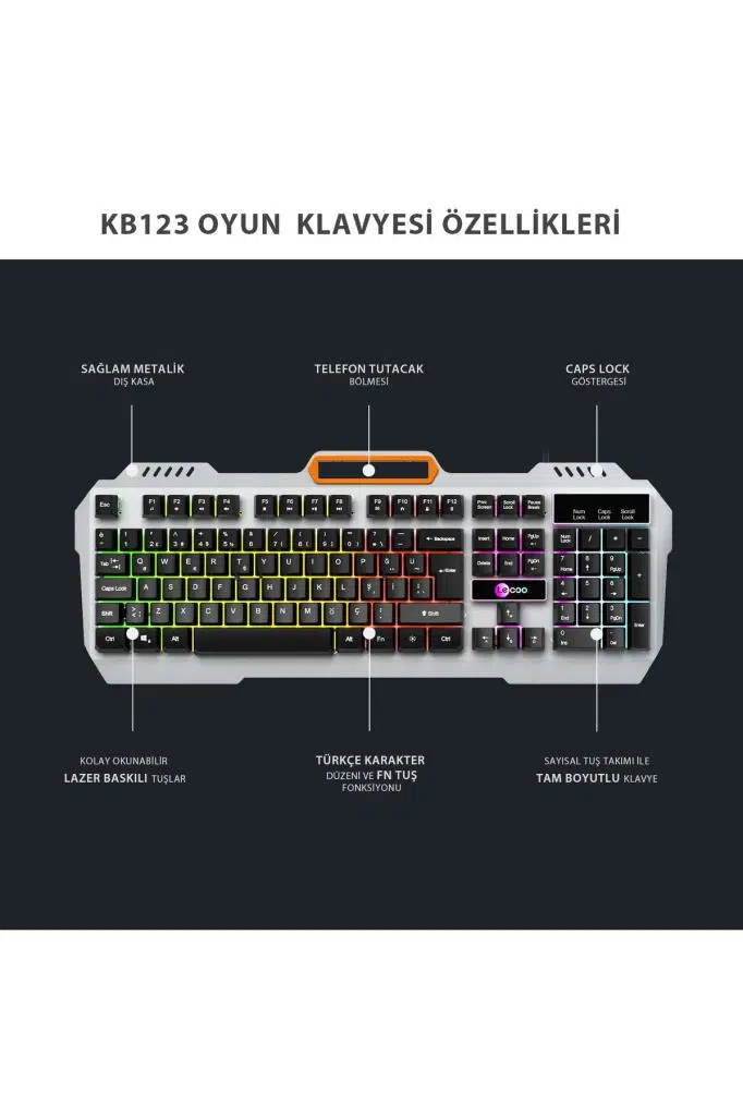 Gaming dünyasına renk katmaya hazır mısınız? Lecoo KB123, Türkçe Q klavye düzeni ve sağlam tuşlarıyla oyun tutkunlarına yüksek performans ve görsel şölen sunuyor.