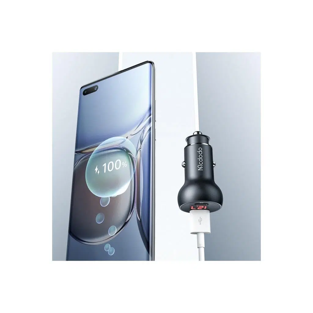 MCDODO CC-7030 MDD 45W USB + Type-C Çift Bağlantı Noktalı LED Ekranlı Araç Şarj Cihazı - Siyah