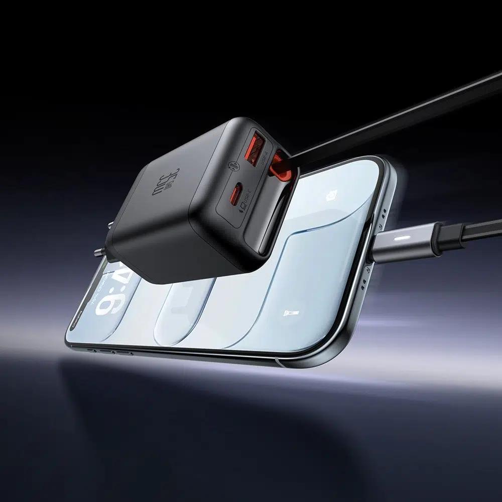 Mcdodo FreeGo Series CH-1280, dahili geri sarılabilir USB-C kablosu ve kompakt GaN tasarımıyla günlük kullanım ve seyahatler için pratik bir şarj çözümü sunar. USB-C, USB-A ve entegre kablo yapısı sayesinde aynı anda birden fazla cihazı düzenli ve güvenli şekilde şarj edebilir.