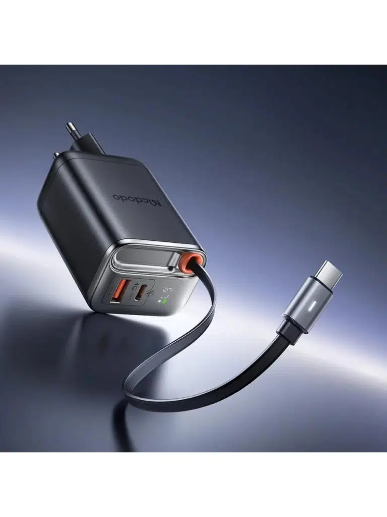 Mcdodo FreeGo 67W GaN Şarj Cihazı CH-4100 Dahili Geri Çekilebilir USB-C Kablo + LED Güç Göstergesi | 3 Cihazla Aynı Anda Şarj | Kompakt, Taşınabilir Tasarım 3’ü 1 Arada Şarj Avantajı Dahili USB-C kablo (60W'a kadar destekler)1 x USB-C port (67W’a kadar)1 x USB-A port (30W’a kadar) Toplamda 3 cihazı aynı anda hızlı şarj etme imkânı!LED Güç Göstergesi Gerçek zamanlı şarj gücünü gösteren akıllı LED ekran, kullanım sırasında şarj durumunu anlık olarak takip etmenizi sağlar. Gelişmiş GaN Teknolojisi ile Kompakt Güç Daha küçük boyutDaha düşük ısı üretimiDaha verimli enerji kullanımı Gallium Nitride (GaN) teknolojisi, FreeGo’yu yüksek performanslı ve taşınabilir bir şarj çözümüne dönüştürüyor.Güvenli ve Sertifikalı CE / FCC / RoHS SertifikalıAşırı ısınma, aşırı akım ve kısa devreye karşı akıllı korumaYangına dayanıklı PC malzeme (V0 derecesi) Kutu İçeriği Mcdodo FreeGo 67W GaN Şarj Cihazı x1Kullanım Kılavuzu x1Garanti Belgesi x1