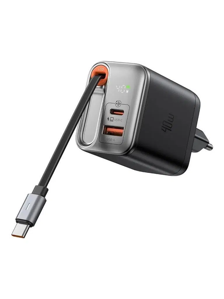 Dahili Geri Çekilebilir USB-C Kablo + LED Güç Göstergesi | GaN Teknolojisi | 3 Cihazla Aynı Anda Şarj
