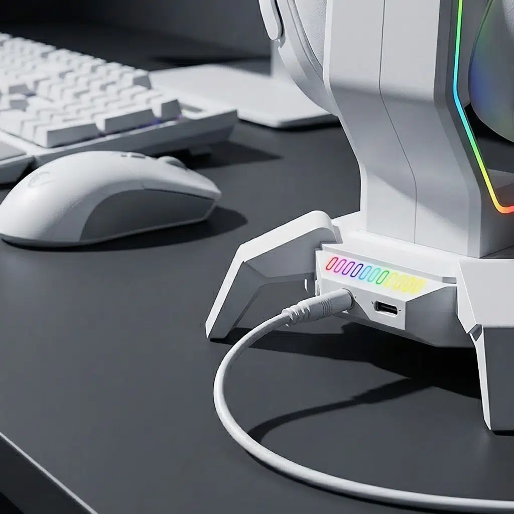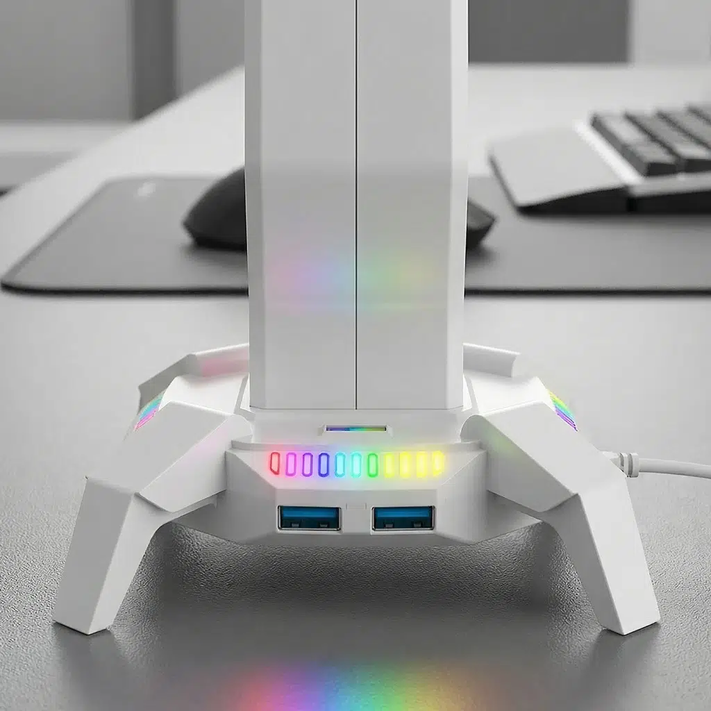 Modern masaüstü kurulumları için tasarlanmış, hem şık hem fonksiyonel bir aksesuar olan bu RGB ışıklı kulaklık standı, oyuncular ve teknoloji meraklıları için ideal bir çözümdür. Ürün, sadece kulaklığınızı düzenli ve güvenli bir şekilde tutmakla kalmaz, aynı zamanda çalışma veya oyun alanınıza görsel bir atmosfer de katar.